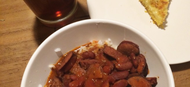 This chili was made Sunday during the championship football games, and naturally football games and a good Indiana chili call for a good Indiana beer. This one was a Farmer’s Daughter Wheat from People’s Brewing Company in Lafayette, Indiana. My mom’s dad was a farmer, so it always seems fitting when I have a Farmer’s (grand)Daughter Wheat, especially with my grandma’s chili.